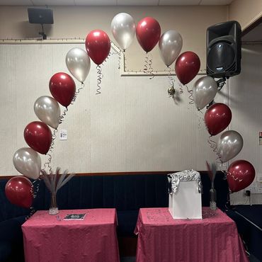 The timeless favourite! Our classic floating helium arches create a soft, elegant curve and are ideal for indoor spaces such as cake tables, dance floors, or stage setups.